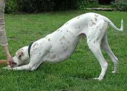 Zunächst geht der Hund langsam - Strecken und Schütteln