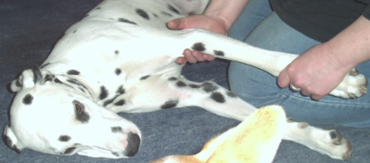 Die Gelenke werden bewegt, ohne dass das Gewicht des Hundes schmerzhaften